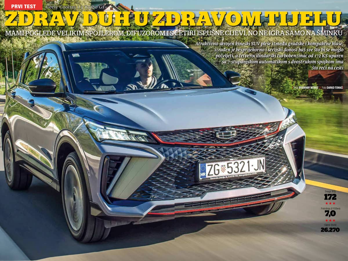 Ista nas je sudbina snašla i s modelom Coolray, nakon nešto većeg i dizajnerski konzervativnijeg Atlasa Pro drugim modelom pristiglim na naše tržište sa značkom Geelyja. Upišete li, naime, u internetsku tražilicu pojam Coolray, sva je prilika da nećete saznati baš sve što vas zanima o ovom atraktivno dizajniranom, 4,38 metra dugačkom, 1,81 metar širokom i 1,62 metra visokom SUV modelu. I to zato što je ovaj model svoj život tamo još bi tek kasnije na većini inozemnih tržišta osvanuo kao Coolray (što, sigurno ćete se složiti, zvuči daleko bolje od Binyue, za što nismo sigurni niti kako bismo pravilno izgovorili). Zanimljivo, na malezijskom tržištu Coolray se od 2020. prodaje pod nazivom Proton X50.... No, kakav god mu bio naziv, riječ je, dakle, od SUV modelu smještenom na platformu BVA međuosovinskog razmaka od 2,6 metara. Taj podatak, što se naslućuje i iz samog naziva platforme, smješta ga u nižu klasu u kojoj dominiraju Suzuki Vitara, Renault Captur, Peugeot 2008, Hyundai Kona..., dok je dužinom samo centimetar kraći od, pri-mjerice, Škode Karoq, kompaktnog SUV modela. Polje za moguće usporedbe - cjenovne i svakojake druge – stoga je izuzetno široko, što nije loša stvar. Uz malo spretnosti, uvijek od nekog od usporedivih modela možete biti veći, jači, brži... Ili barem povoljniji.